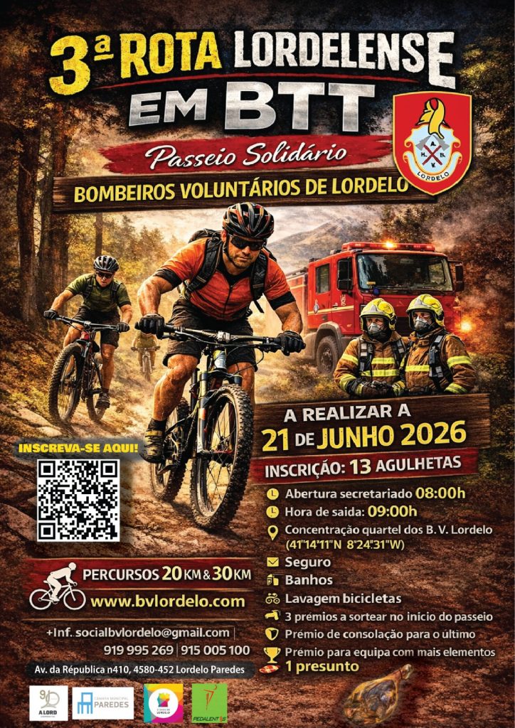 A Associação Humanitária dos Bombeiros Voluntários de Lordelo vai promover, no próximo dia 21 de junho, a “3.ª Rota Lordelense BTT – Passeio Solidário”, uma iniciativa que alia o desporto à solidariedade.